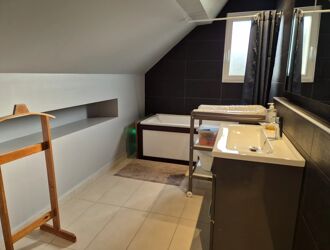 L'étage est composé de deux chambres ainsi qu'un grenier partiellement isolé.